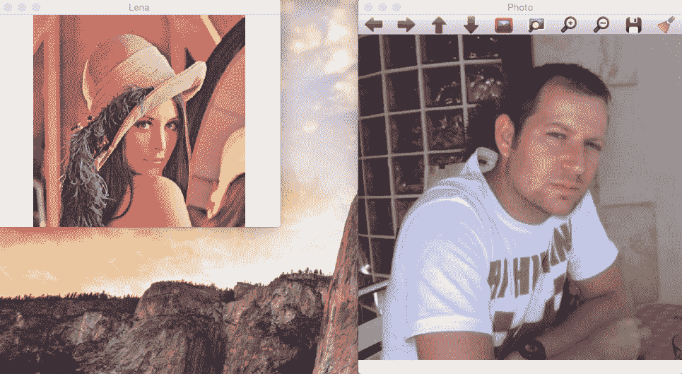Lena窗口10像素,向上移动10像素,向左移动Photo窗口520像素,向上移动10像素: