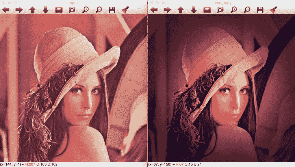 通过应用 LUT 可以非常容易地实现此功能。 LUT 是返回给定值的预处理值以在内存中执行计算的向量或表。 LUT 是一种常用技术,通过避免重复执行代价高昂的计算来节省 CPU 周期。 我们不是为每个像素调用exponential/divide函数,而是对每个可能的像素值只执行一次(256次),并将结果存储在表中。 因此,我们以牺牲一点内存为代价节省了 CPU 时间。 虽然这在图像尺寸较小的标准 PC 上可能不会有太大的不同,但对于 CPU 受限的硬件(如 Raspberry PI)来说,这就是一个巨大的差异。