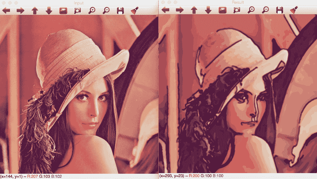 本章的最后一节致力于创建另一种效果,称为卡通化;此效果的目的是创建一个看起来像卡通的图像。 为此,我们将算法分为两个步骤:边缘检测和颜色过滤。