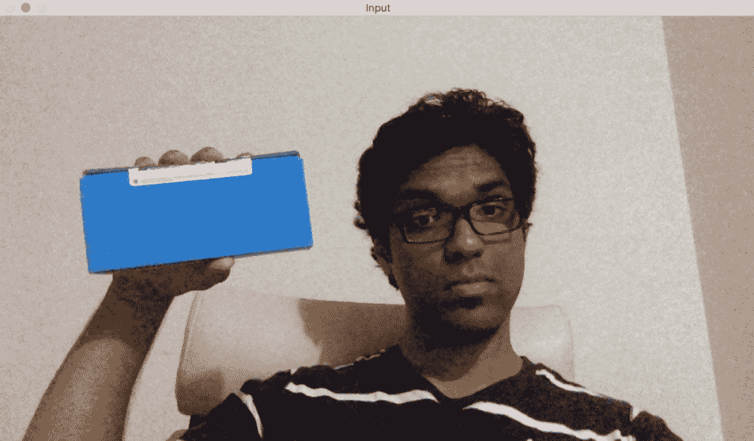 现在我们已经选择了对象,该算法计算直方图反投影并提取所有信息。 什么是直方图反投影? 这只是一种识别图像是否符合我们直方图模型的方法。 我们计算特定物体的直方图模型,然后使用该模型在图像中找到该物体。 让我们移动对象,看看它是如何被跟踪的: