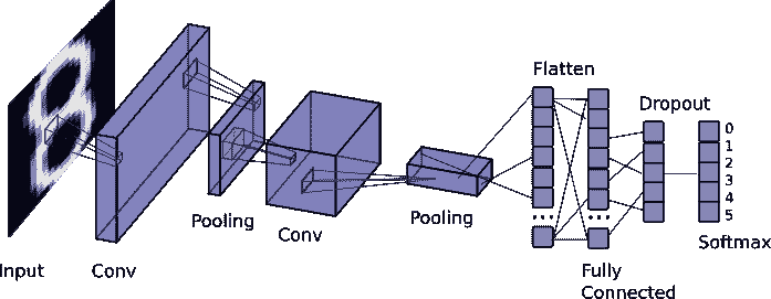 卷积层是深度学习体系结构最重要的方面之一,但也有其他重要层,如池化、丢弃、扁平和Softmax。 在下图中,我们可以看到一个基本的深度学习架构,其中堆叠了一些卷积和池层: