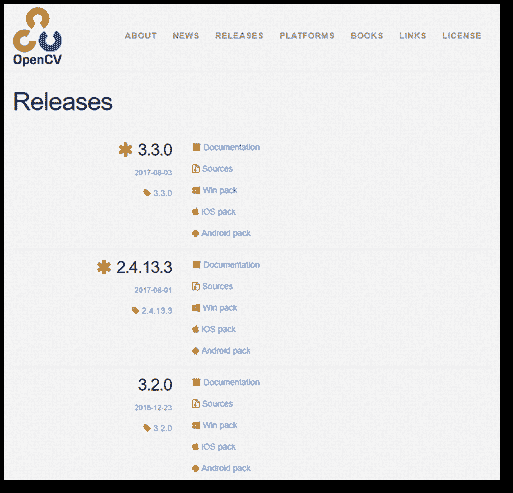 OpenCV 在其网站的“发布”页面下维护其官方和稳定版本: