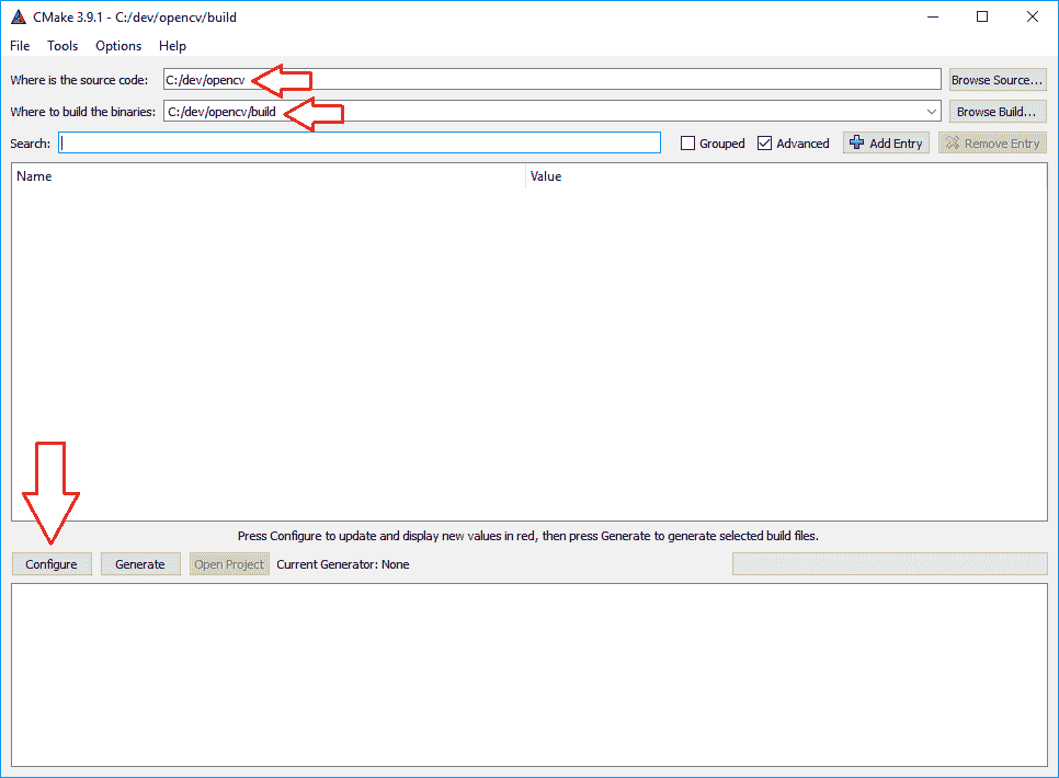 您将在 CMake 中看到一个简短的过程,完成后,您将能够设置各种参数来配置您的 OpenCV 构建。 有许多参数需要配置,因此我们将直接影响那些直接影响我们的参数。