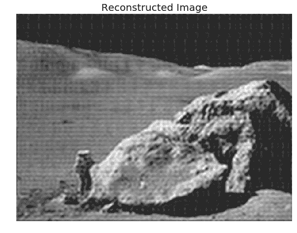 下面的屏幕截图显示了前面代码块的输出,即通过应用陷波滤波器恢复的图像。可以看出,原始图像看起来比恢复图像更清晰,因为来自原始图像的一些真实频率也被带阻滤波器与噪声一起拒绝: