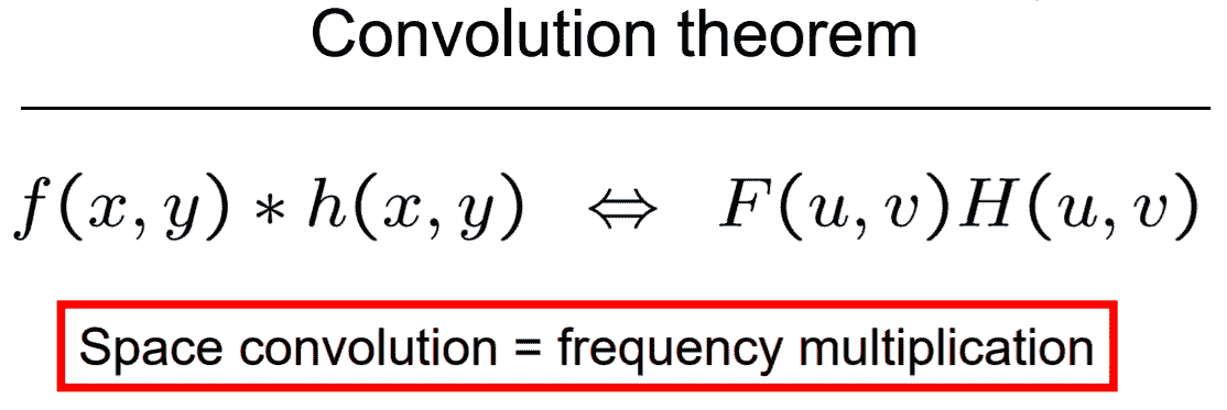 卷积定理表示图像域中的卷积相当于频域中的简单乘法: