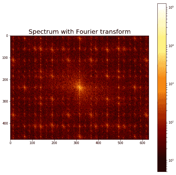 以下屏幕截图显示了前面代码的输出,即原始噪声图像的傅里叶光谱: