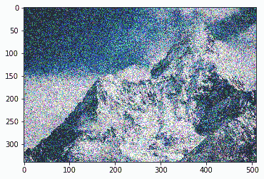 下面的屏幕截图显示了通过使用前面的代码将随机噪声添加到原始图像中而创建的噪声图像: