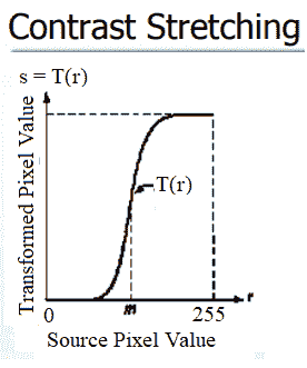 对比度拉伸操作将低对比度图像作为输入,并拉伸较窄的强度值范围以跨越期望的较宽值范围,以便输出高对比度输出图像,从而增强图像的对比度。它只是一个应用于图像像素值的线性缩放函数,因此图像增强没有那么剧烈(与其更复杂的对应直方图均衡化相比,稍后将进行描述)。以下屏幕截图显示了对比度拉伸的点变换功能: