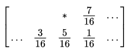 在先前的截图中,当前像素用星(*)表示,空白像素表示先前扫描的像素。该算法从左到右、从上到下扫描图像。每次量化误差分布在相邻像素(尚未被扫描)之间时,它依次量化像素值,而不影响已经被量化的像素。因此,如果已向下舍入多个像素,则更可能通过算法向上舍入后续像素,从而使平均量化误差接近于零。