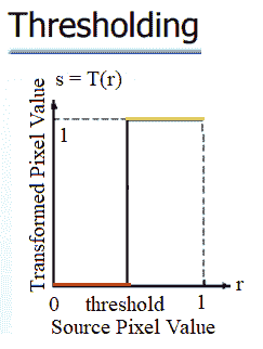 这是一个点操作,通过将低于某个阈值的所有像素变为零,将高于该阈值的所有像素变为一,从灰度图像创建二值图像,如以下屏幕截图所示: