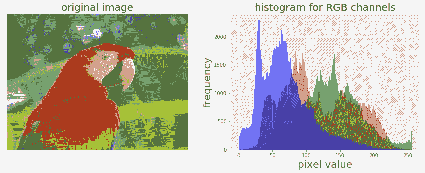 让我们实现输入图像颜色通道的直方图: