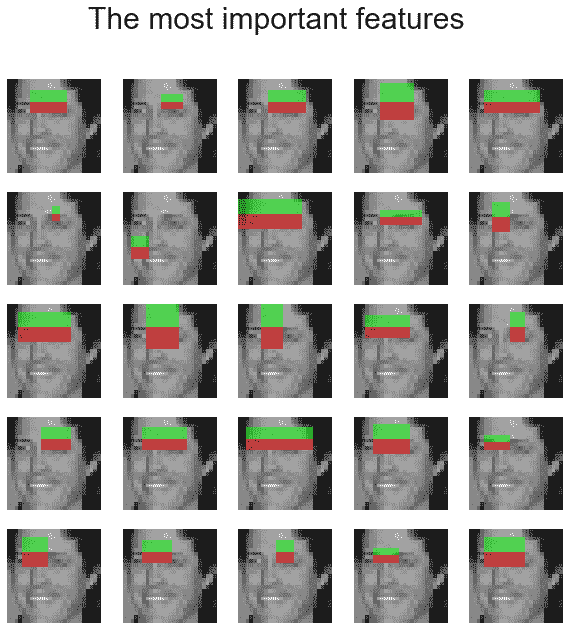 下面的屏幕截图显示了前面代码块的输出—用于人脸检测的前 25 个最重要的 Haar-like 特征: