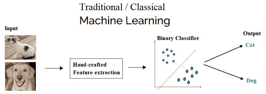 传统 ML 将具有特征提取和分类器,以解决任何问题: