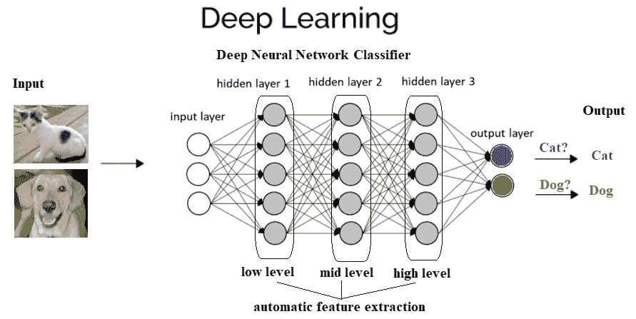 **现在,让我们以图解方式(猫和狗的图像)在图像分类中使用 ML 和深度学习模型时,看看它们之间的区别。