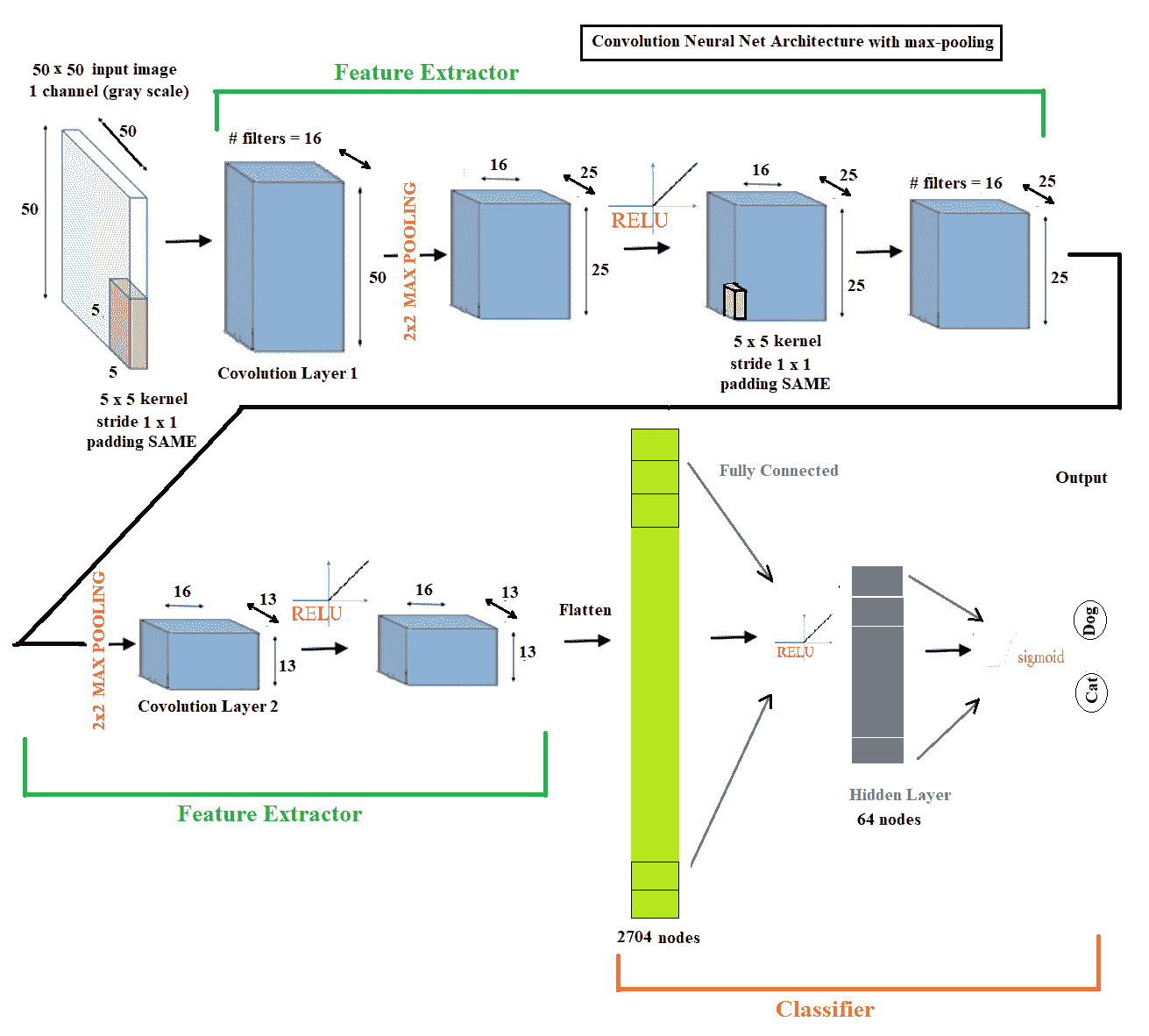 对许多综合图像分类问题进行预训练模型的训练。卷积层充当特征提取器,完全连接的(FC层充当分类器、,如下图所示,在使用 conv 网络进行猫狗图像分类的情况下: