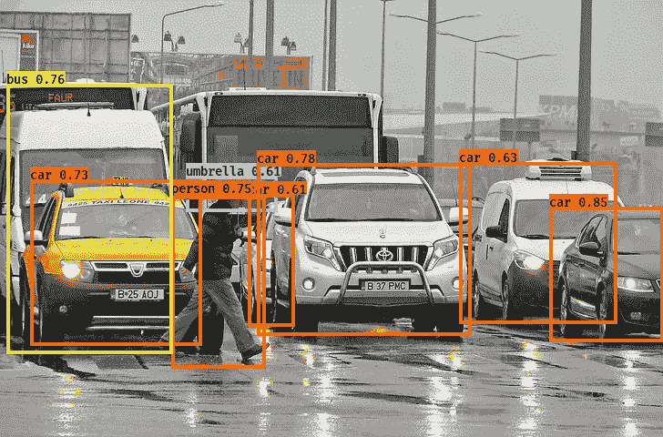 在下面的代码片段中,我们将实现两个函数来预处理图像,并绘制从 YOLO 获得的框来检测图像中存在的对象: