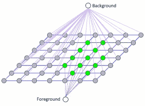 每个像素(或在算法中概念化的节点)都连接到前景或背景节点。 您可以将其可视化如下: