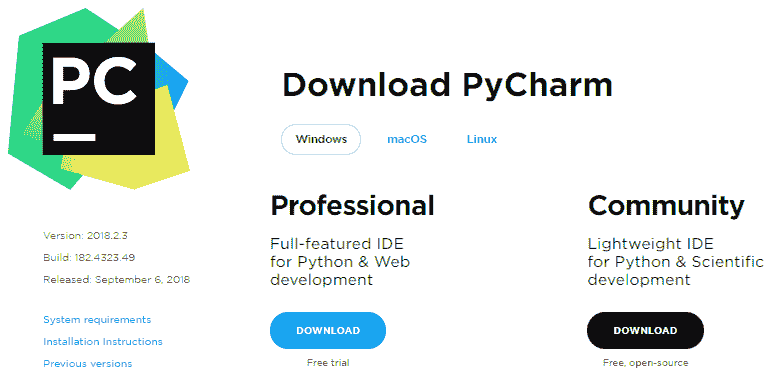 此外,建议您安装集成开发环境IDE)包,因为它有助于计算机程序员进行软件开发。 从这个意义上讲,建议使用 Python 特定的 IDE。 实际上是 Python IDE 是 PyCharm,可以从这里下载。
