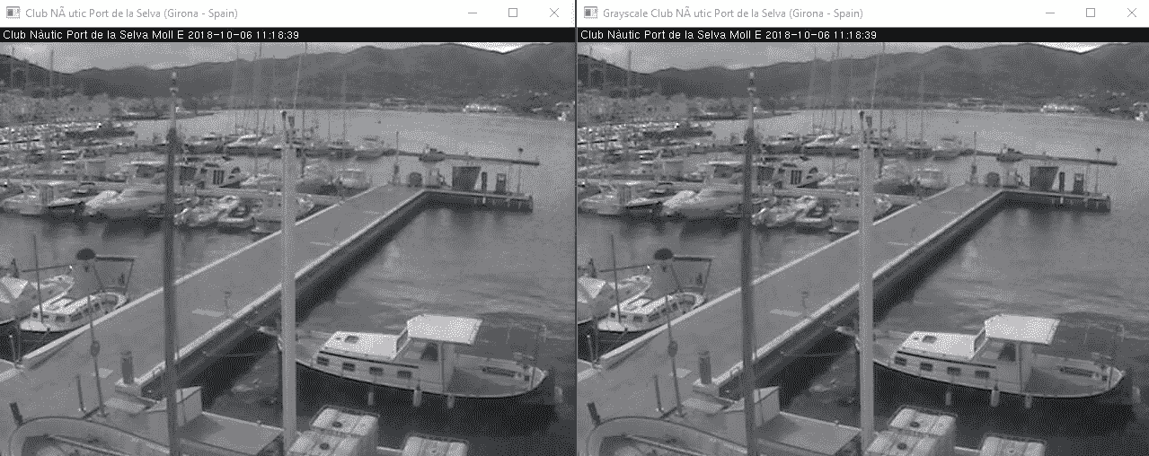 然后,我们创建cv2.VideoWriter对象out_gray。 我们使用与输入相机相同的属性。 最后一个参数是False,以便我们可以以灰度级编写视频。 如果我们要创建彩色视频,则最后一个参数应为True: