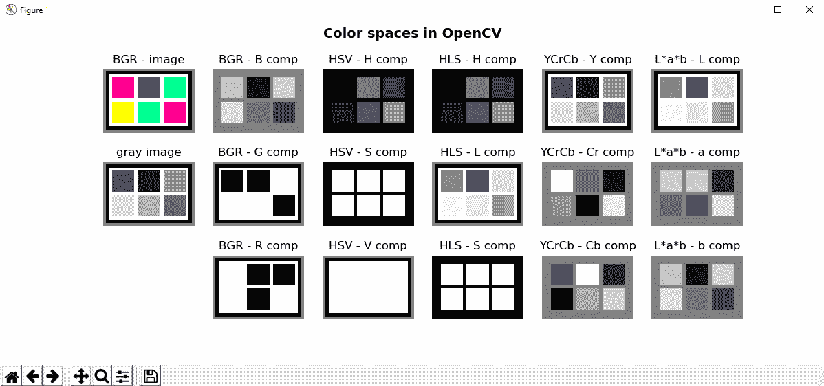 该脚本的完整代码可以在color_space.py中看到。 在以下屏幕截图中可以看到输出: