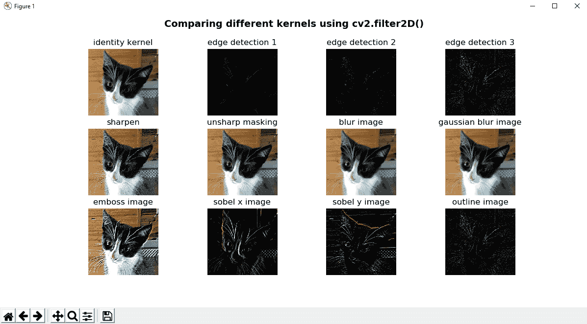 在前面的屏幕截图中,您可以看到在图像处理中应用通用核的效果。