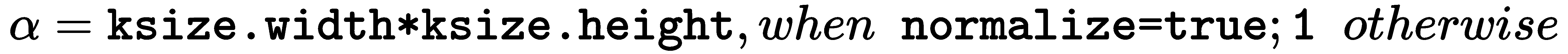 您可以同时使用cv2.blur()cv2.boxFilter()通过将图像与核进行卷积来执行平均,在cv2.boxFilter()情况下,该核可以不规范化。 它们仅获取核区域下所有像素的平均值,然后用该平均值替换中心元素。 您可以控制核大小和锚定核(默认为(-1,-1),这意味着锚定位于核中心)。 当cv2.boxFilter()normalize参数(默认为True)等于True时,两个函数执行相同的操作。 这样,两个函数都使用核对图像进行平滑处理,如以下表达式所示: