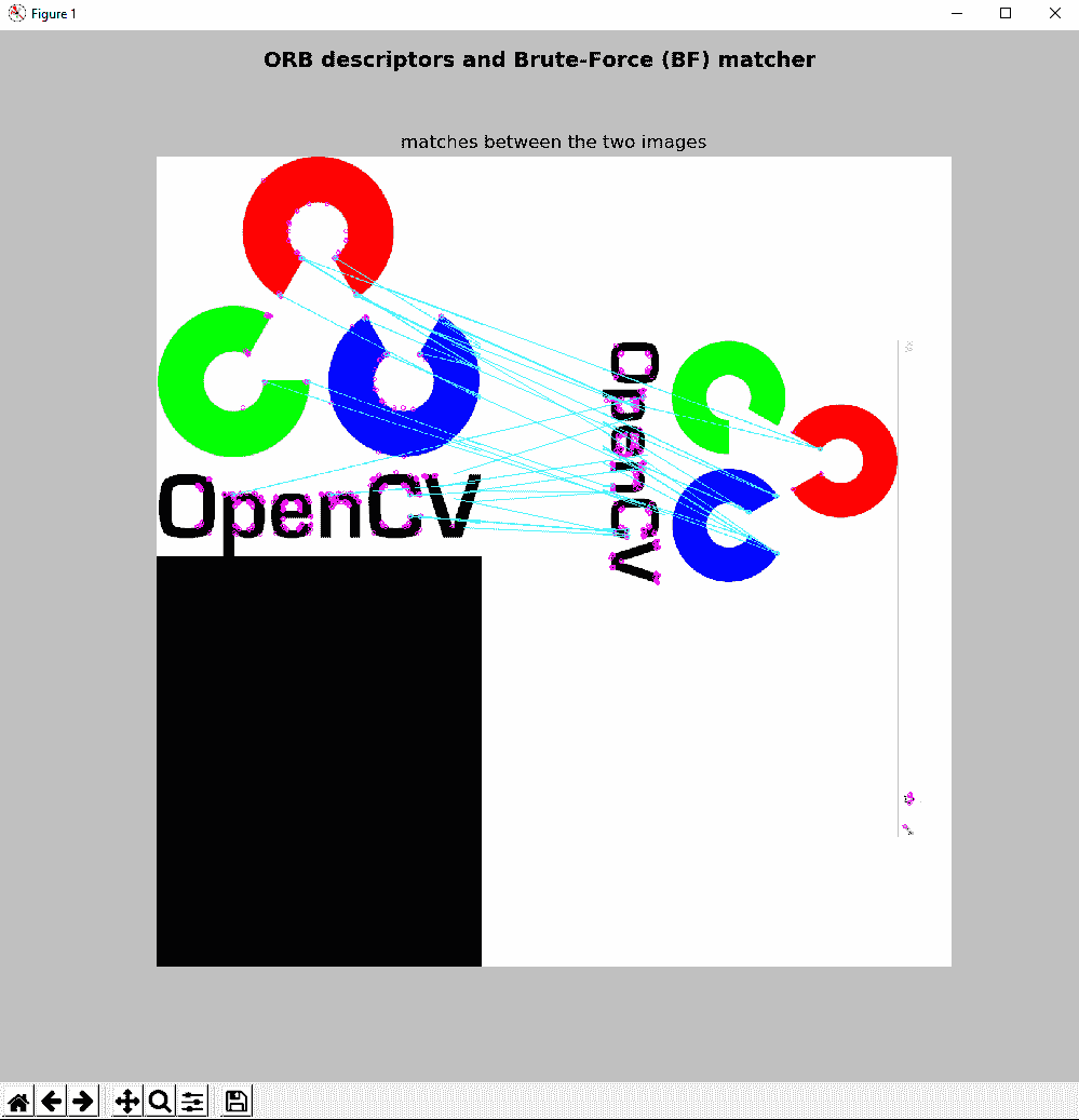 如您在上一个屏幕截图中所见,绘制了两个图像(image_query,image_scene)之间的匹配。