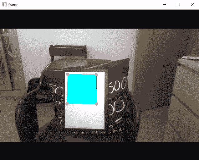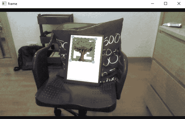 这里,pts_corners_src包含原始图像的四个角,M是透视变换矩阵; pts_corners_dst输出包含查询图像中对象的四个角。 我们可以使用cv2.polyline()函数绘制检测到的物体的轮廓: