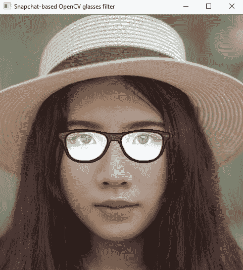 下一个屏幕截图中可以看到snapchat_augmeted_reality_glasses.py脚本的输出: