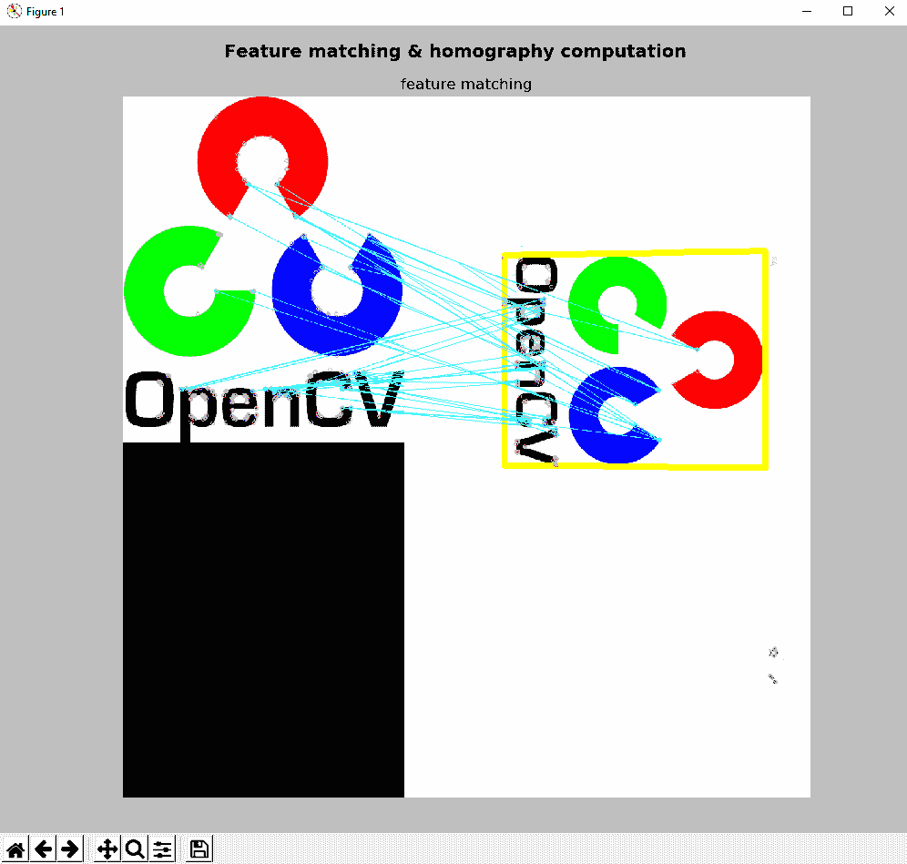 为了完成本节,我们将看到查找对象的最后一步。 一旦特征匹配,下一步就是使用cv2.findHomography()函数在两个图像中匹配的keypoints的位置之间找到透视变换。