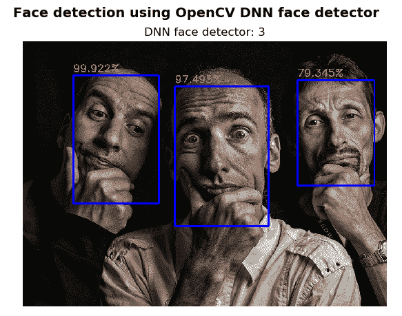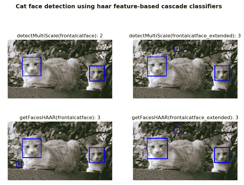 cv2.CascadeClassifier()函数用于从文件加载分类器。 您可以从 OpenCV 信息库下载以下级联分类器文件。 此外,我们在 GitHub 存储库中包含了两个已加载的层叠分类器文件(haarcascade_frontalface_alt2.xmlhaarcascade_frontalface_default.xml)。