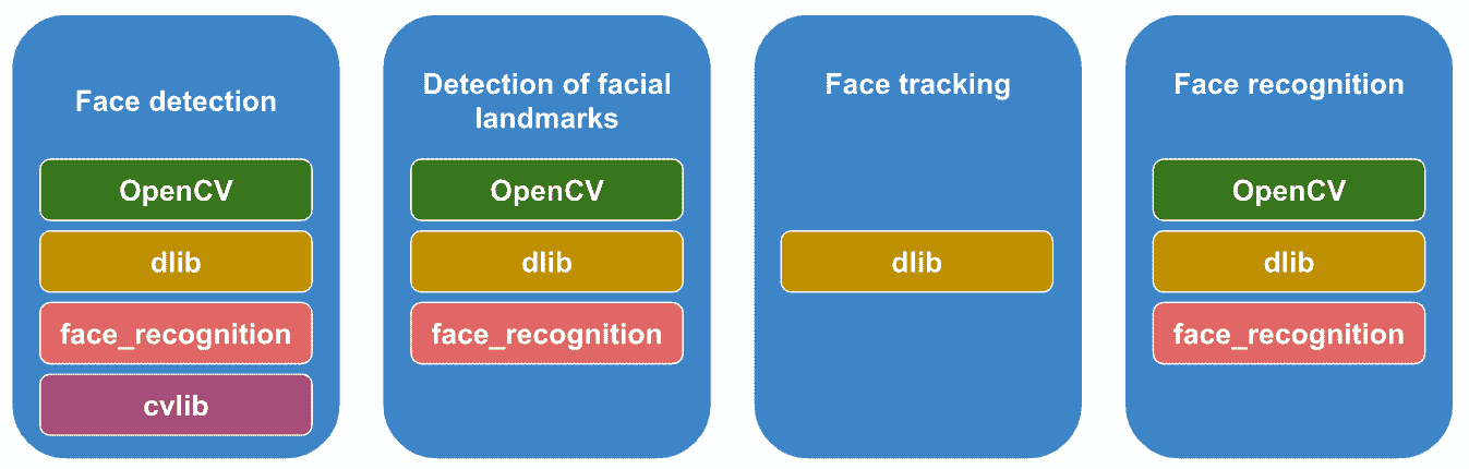 如上图所示,本章将使用 OpenCVdlibface_recognitioncvlib