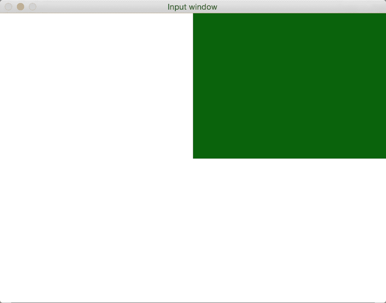 在本节中,我们将看到如何使用鼠标与显示窗口进行交互。 让我们从简单的事情开始。 我们将编写一个程序,该程序将检测检测到鼠标单击的象限。 一旦检测到它,我们将突出显示该象限: