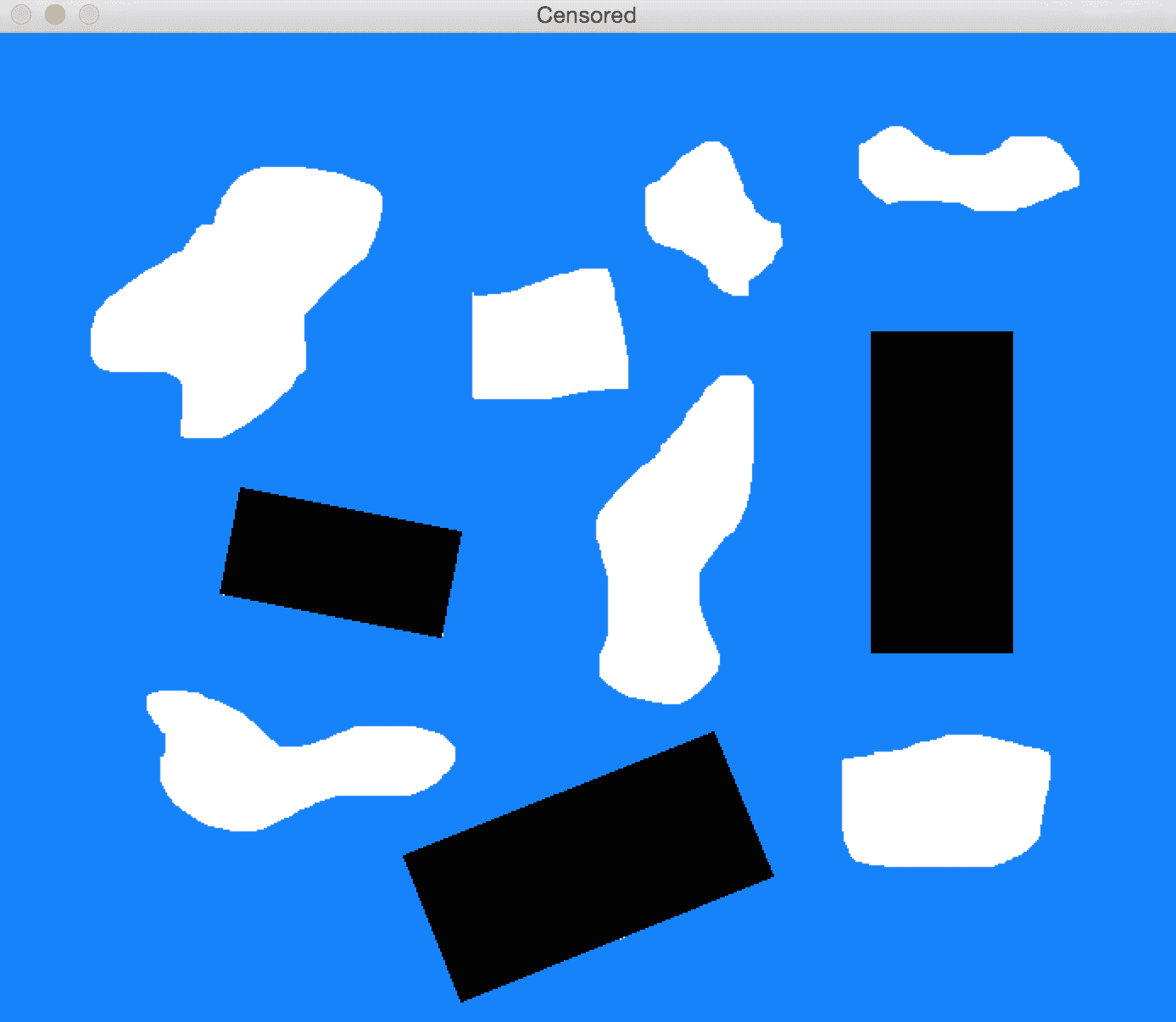 我们知道我们想将形状分为两组,即回旋镖形状和其他形状。 因此,我们知道 K 均值中的K是什么。 一旦使用该值并对值进行聚类,我们将选择具有最低实体因子的聚类,这将为我们提供回旋镖形状。 请记住,这种方法仅在特定情况下有效。 如果要处理其他类型的形状,则必须使用其他指标来确保形状检测有效。 正如我们前面所讨论的,这在很大程度上取决于情况。 如果检测到形状并将其屏蔽掉,它将看起来像这样: