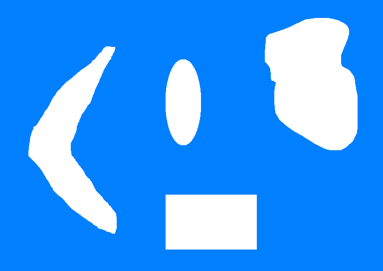 现在,以前面的图像为参考,我们是否可以识别原始图像中与回旋镖相对应的形状? 如果您注意到,我们不能使用简单的基于相关性的方法,因为形状都会变形。 这意味着我们寻找精确匹配的方法几乎行不通! 我们需要了解形状的特征并匹配相应的特征以识别飞旋镖形状。 OpenCV 提供了几个形状匹配器工具,我们可以使用它们来实现此目的。 如果您想了解更多信息,请访问这里了解更多信息。