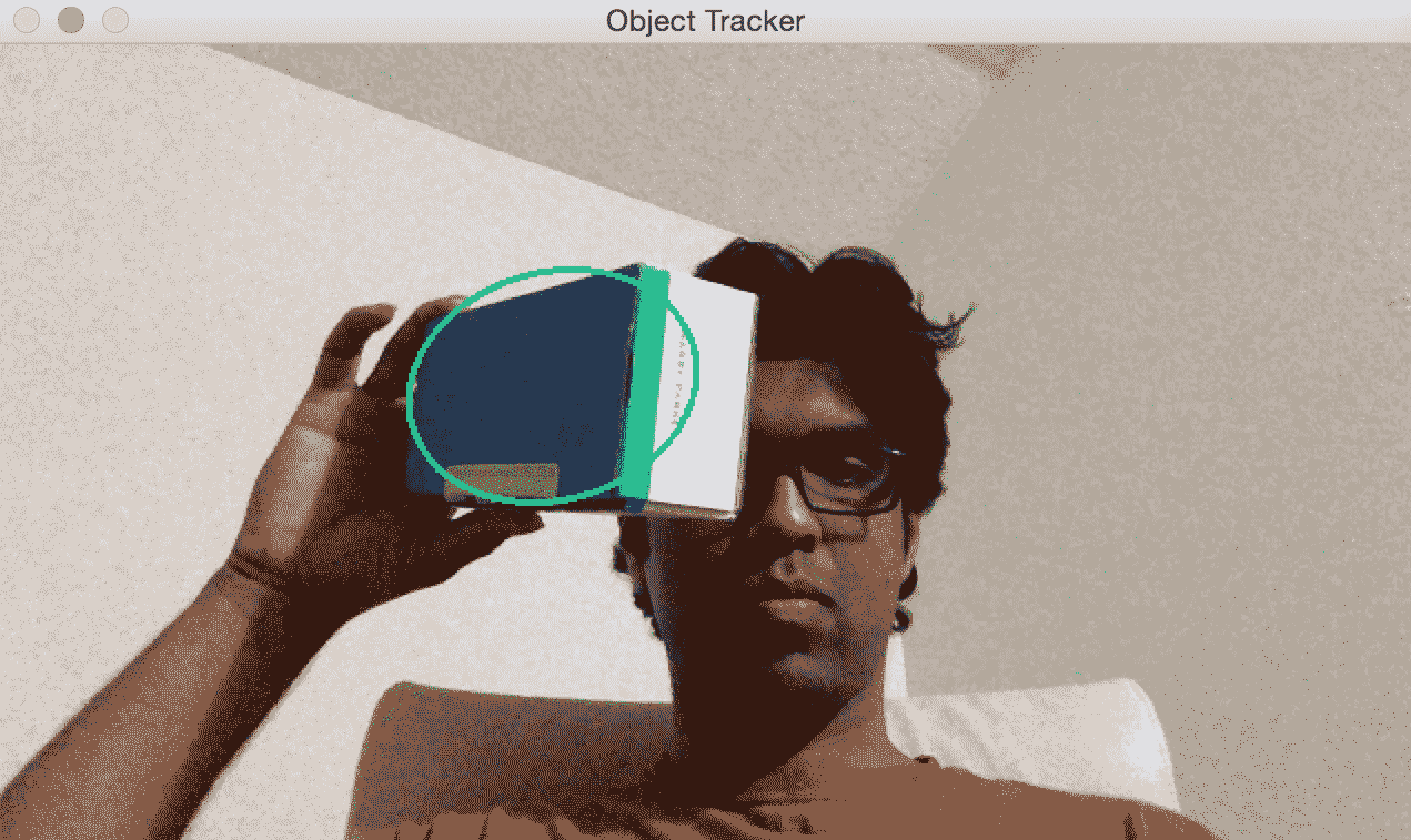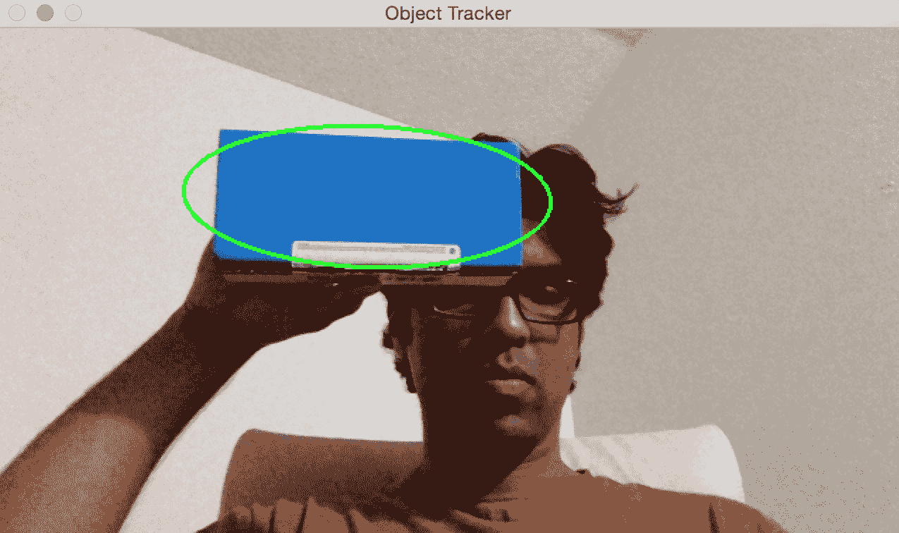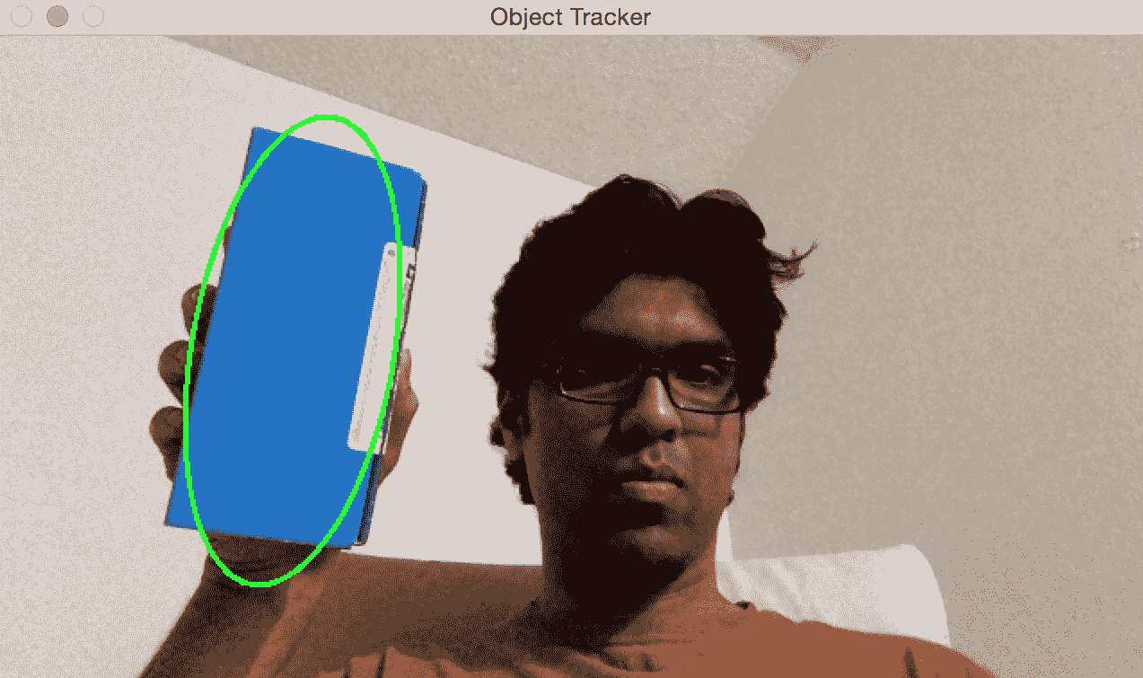 就像我们在这里看到的那样,我们的跟踪器会根据颜色特征识别视频中的特定对象。 为了使用此跟踪器,我们需要知道目标对象的颜色分布。 以下是代码: