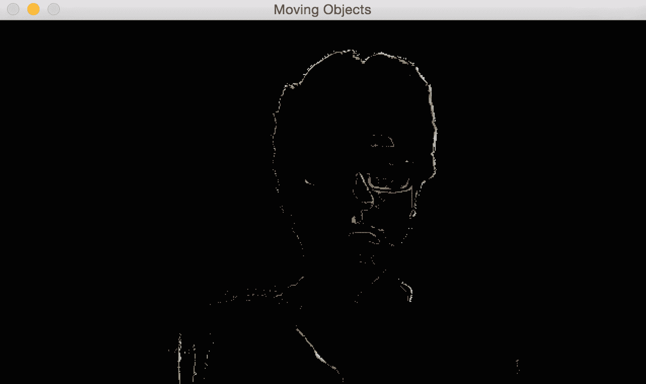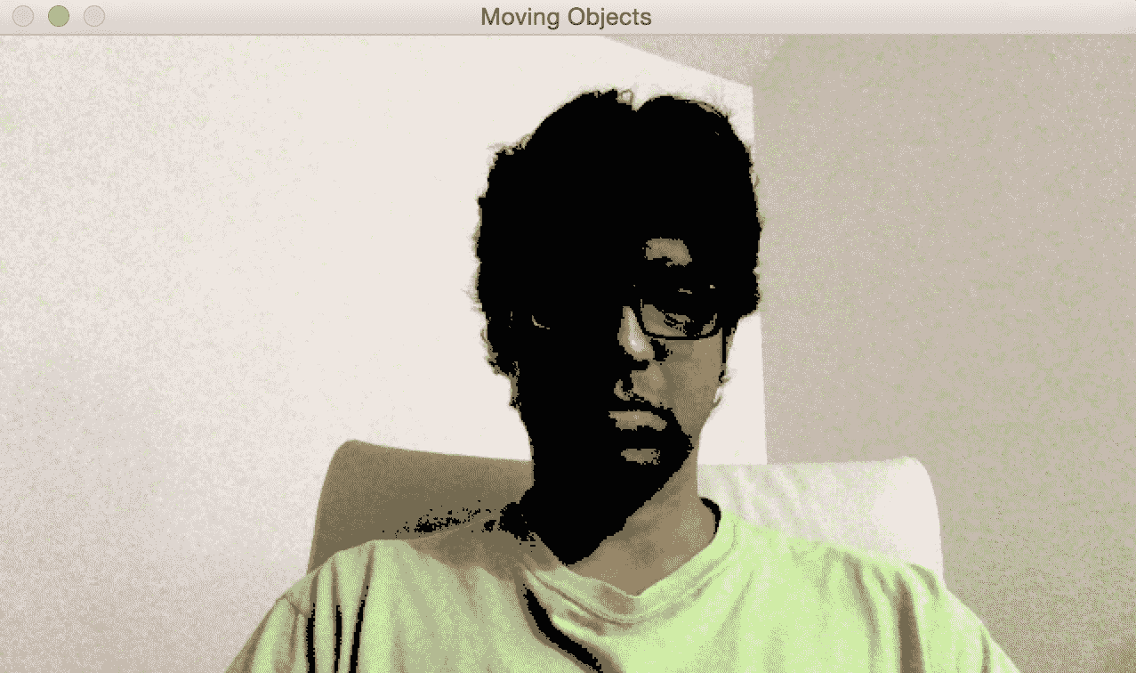 请注意,我的脸部如何已成为背景模型(变黑区域)的一部分。 以下屏幕截图显示了几秒钟后我们将看到的内容。 如果我们继续前进,一切最终都会成为背景模型的一部分: