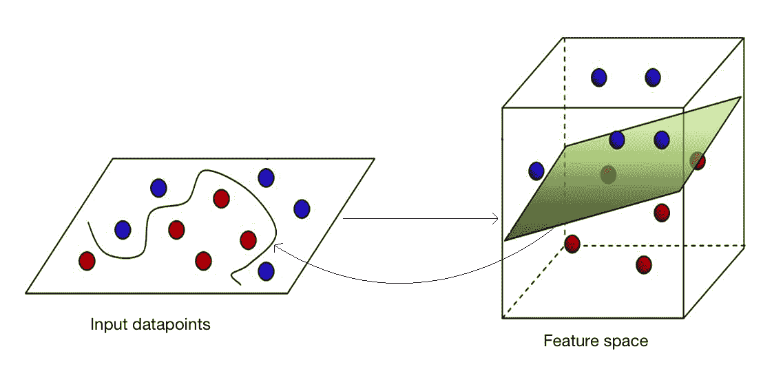 我们在 SVM 中使用了核技巧。 考虑下图:
