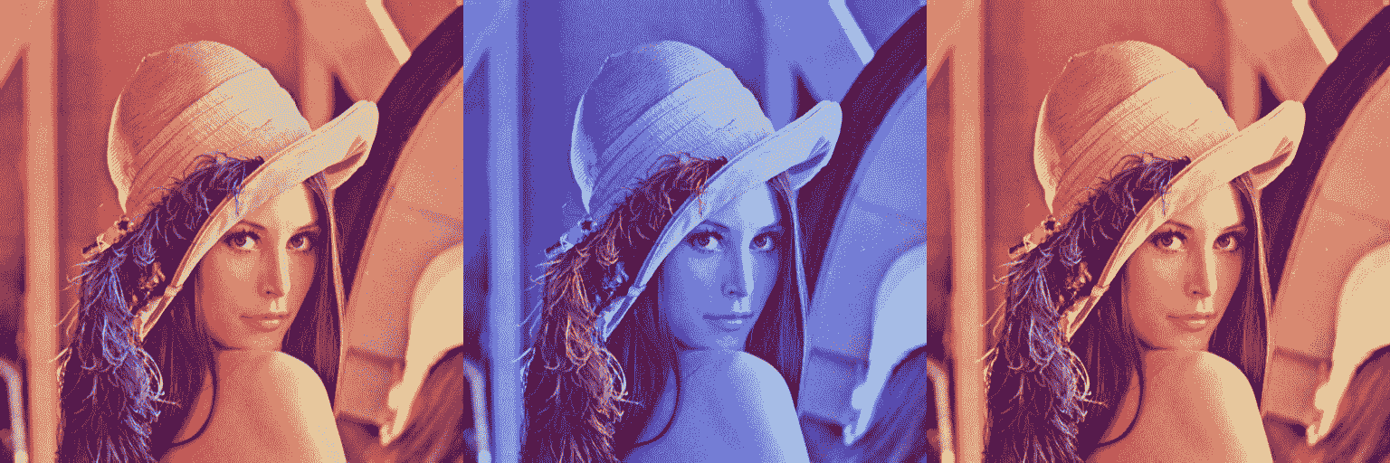 1. 向后交换通道,并按不同比例缩放它们以更改图像的色彩: