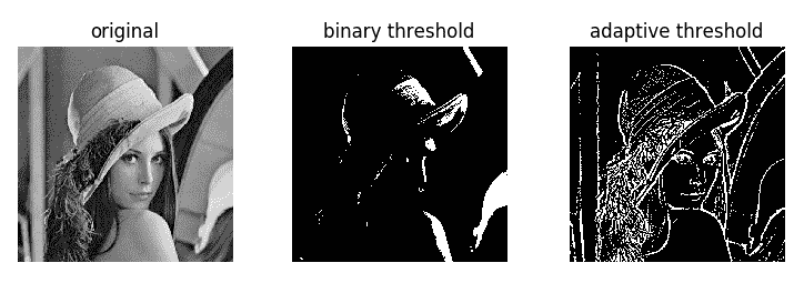 OpenCV 具有许多不同类型的阈值和阈值化方法。 您可以将所有方法分为两类:全局(对所有像素使用相同的阈值)和自适应(对阈值依赖于像素的自适应)。