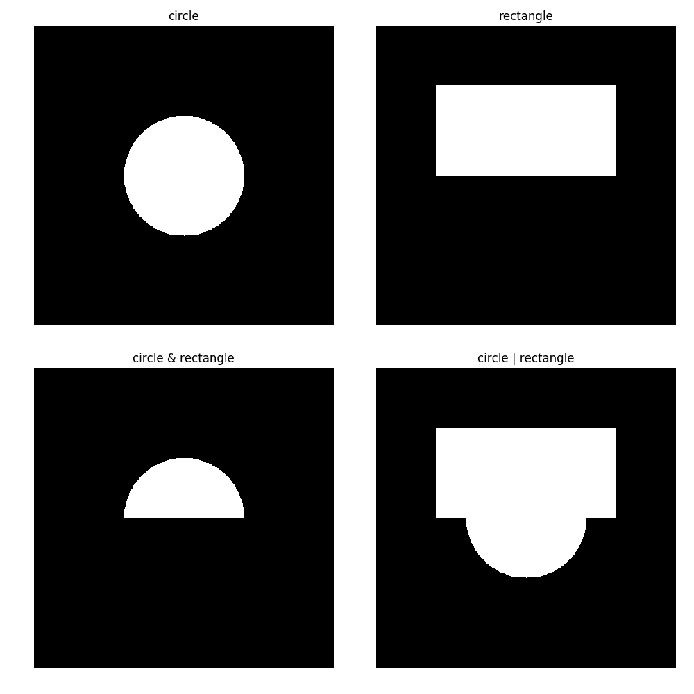 1. 使用按位或运算符组合圆形和矩形遮罩: