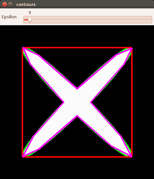 此外,您可以指定是否需要轮廓压缩(使用cv2.CHAIN_APPROX_SIMPLE将轮廓的垂直和水平部分折叠到各自的端​​点中)(cv2.CHAIN_APPROX_NONE)。