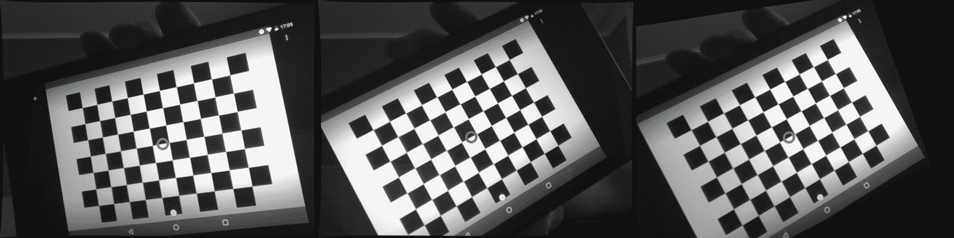 为了收集用于相机校准的数据,您需要检测特定大小的棋盘图案,并累积成对的图像和找到的角点的坐标。 从第 4 章,“对象检测和机器学习”的“检测棋盘和圆形网格图案”,cv2.findChessboardCorners中可以知道,实现了棋盘角检测。 有关更多信息,请参见第 4 章“对象检测和机器学习”。 值得一提的是,棋盘上的角是由两个黑色正方形形成的角,在cv2.findChessboardCorners中传递的图案大小应与真实棋盘图案中的图案大小相同。 样本的数量及其沿视场的分布也非常重要。 在实际情况下,50 到 100 个样本就足够了。*