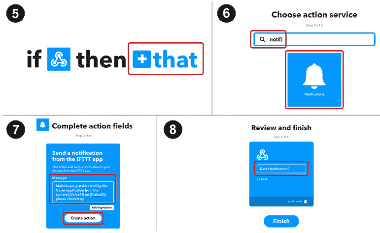 在上一节中,我们完成了运动检测功能。 但是,当它检测到运动时,除了保存该运动的视频外,它仅打印一条消息。 作为家庭安全应用,这还不够。 无论我们身在何处或在做什么,我们都需要知道何时检测到运动。 在本节中,我们将通过 IFTTT 服务将通知发送到我们的手机来实现。