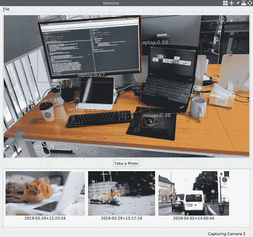 现在,让我们编译并运行我们的应用以对其进行测试。 这是我通过相机观察桌面时的侦探应用的屏幕截图: