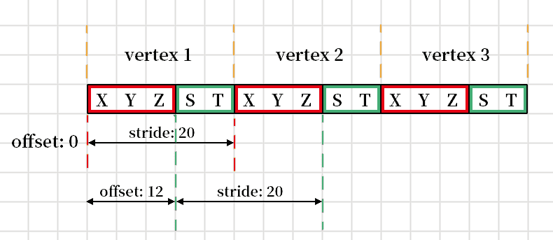 现在,我们已经将数据填充到顶点缓冲区对象中,但是该缓冲区在 GPU 上不可见。 为了使它在 GPU 上可见,我们应该引入一个顶点数组对象并放置一个指向其中缓冲区的指针: