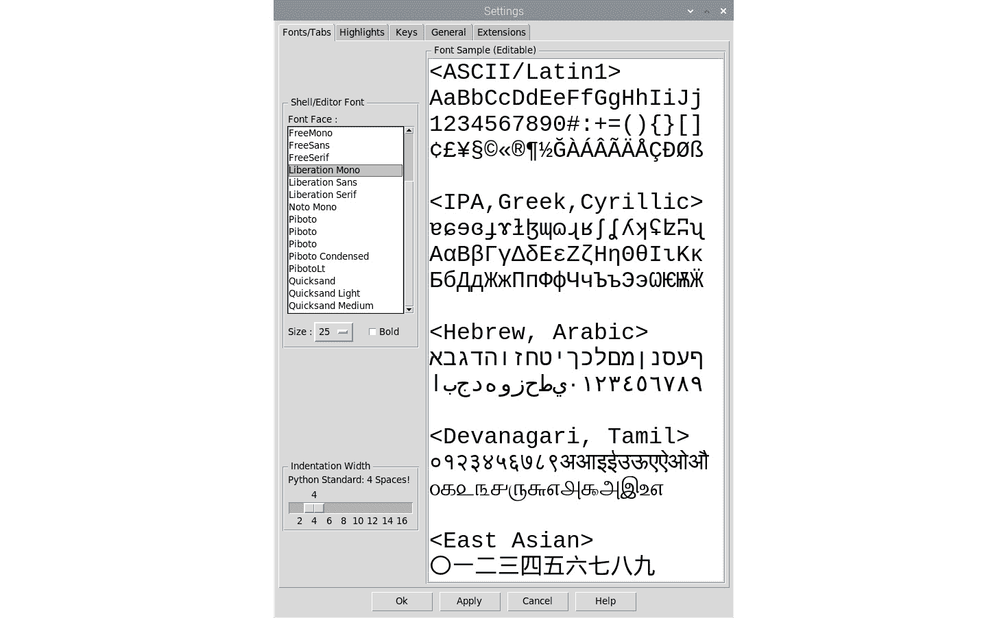 发生这种情况时,解释器窗口也将保持打开状态。 您可以关闭或将其最小化。 如果由于字体大小而导致难以在 IDLE 的解释器或代码编辑器中阅读文本,则可以转到选项 | 从菜单配置 IDLE 以设置文本的字体和大小。 配置窗口如下所示: