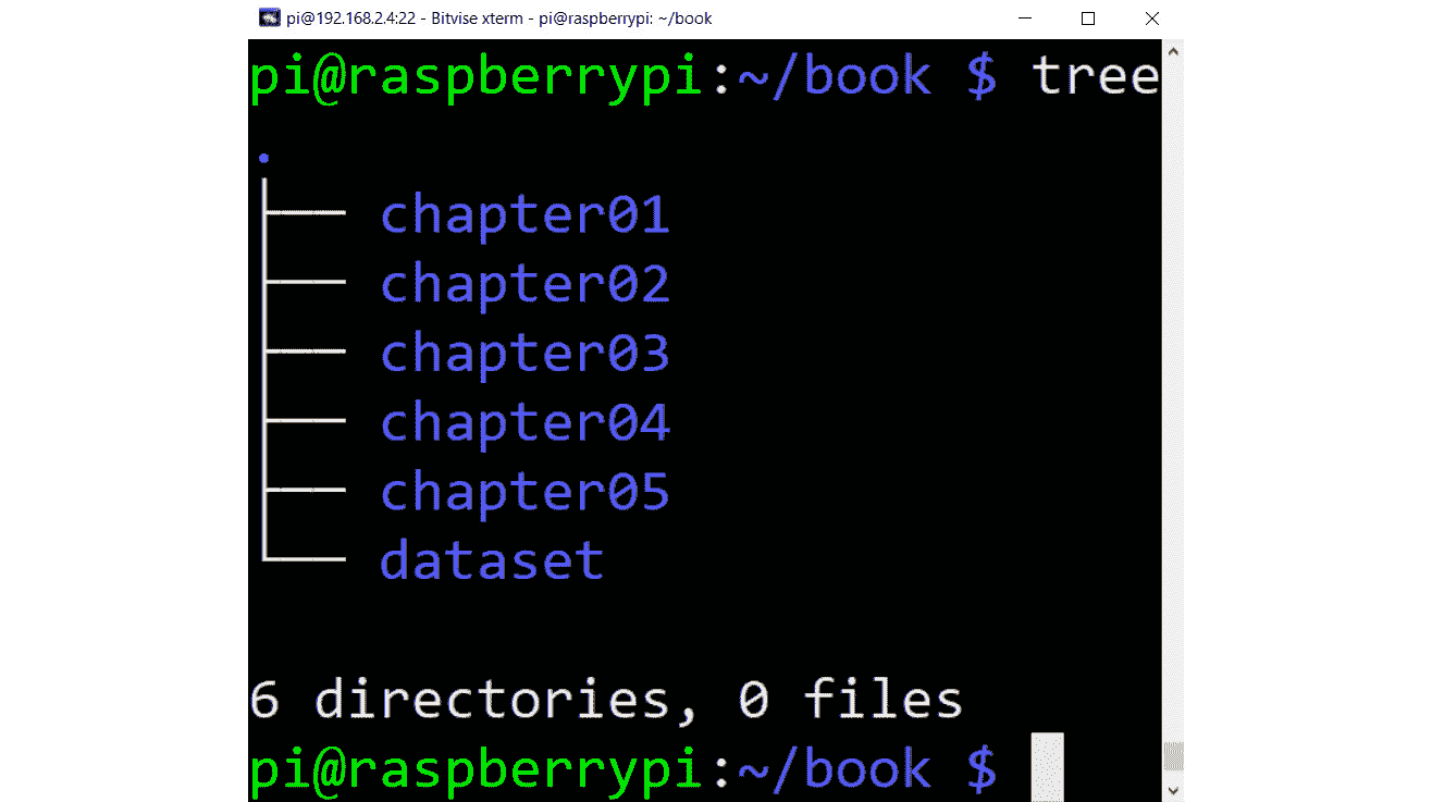 我们可以像这样为每个章节创建一个单独的目录。 另外,需要一个单独的数据集目录来存储我们的数据。 创建指定的目录结构后,运行以下命令序列:
